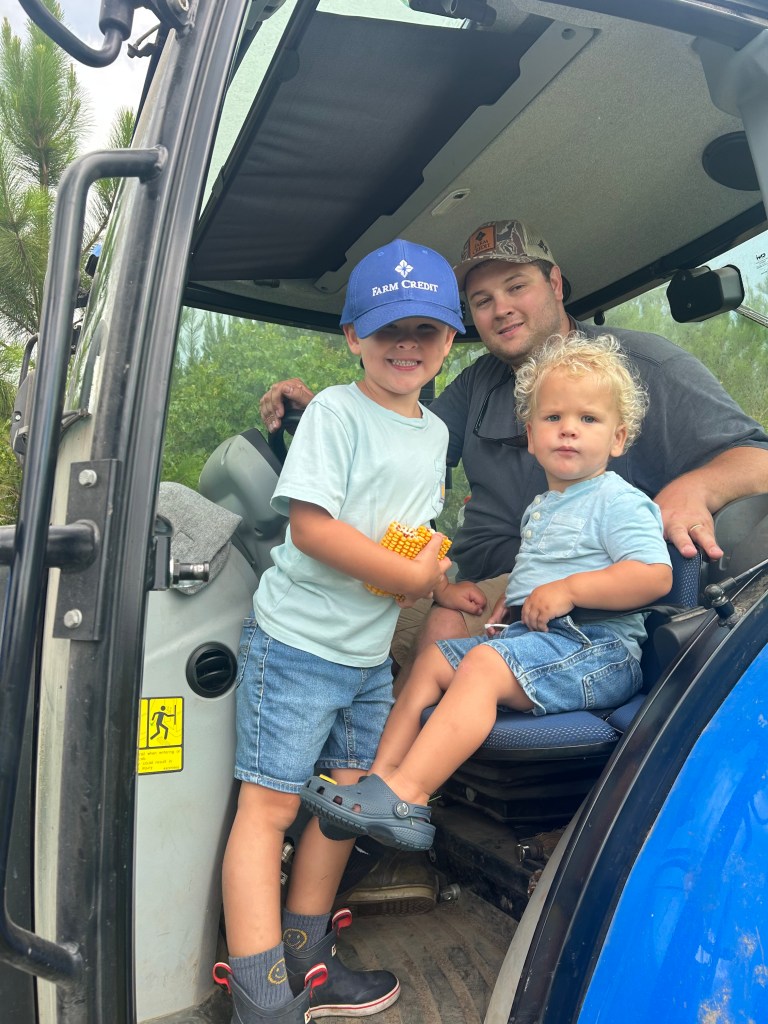 Dr. Terry Nichols, who most know as “Doc”, and his wife Rosa have raised five children. While each of their children contribute to the farm, two of them live on it currently and help run day-to-day operations alongside their families. Logan and Caroline Chappell (far left) have been an active part of UHF since they got married in 2019. Logan is a commercial ag loan officer at Farm Credit of Northwest Florida and Caroline spends her days wrangling their two boys, Emmett and Rhett. Charlie and Emma Nichols (far right) just recently moved back home this year. Charlie works in sales for Meherrin Ag and Emma is a dental hygienist at Doc’s office.